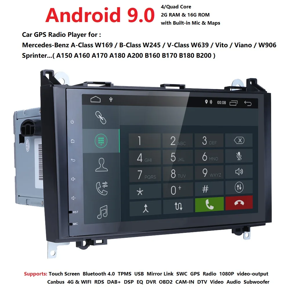 Ossuret Android 9.0 2Din Car DVD GPS for Mercedes Benz B200 A B Class W169 W245 Viano Vito W639 Sprinter W906 Wifi BT FM/AM SWC